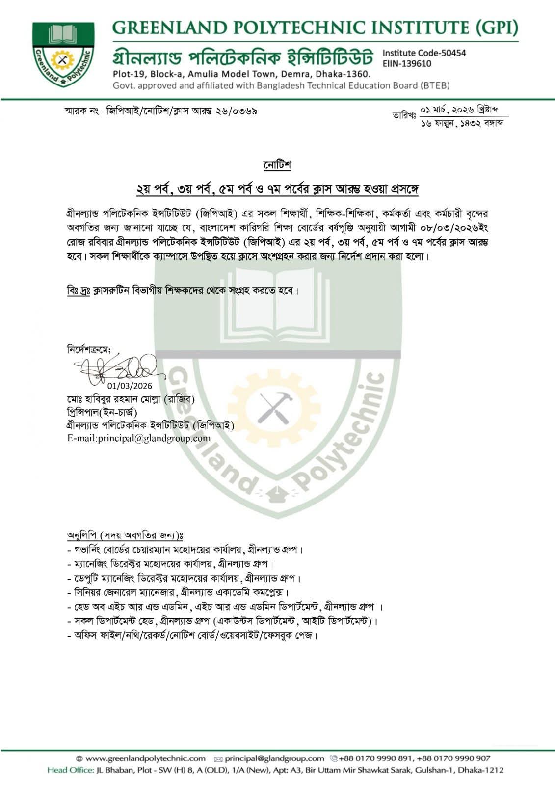 ভর্তি চলছে ! Admission on going ! ৫০% ছাড়ে এবং ৪০,০০০ ( চল্লিশ হাজার ) টাকা সরকারি বৃত্তিতে চার বছর মেয়াদি ডিপ্লোমা-ইন-ইঞ্জিনিয়ারিং-এ ভর্তি চলছে ! ইঞ্জিনিয়ারিং টেকনোলজি সমূহঃ কম্পিউটার সায়েন্স অ্যান্ড টেকনোলজি, সিভিল টেকনোলজি, ইলেকট্রিক্যাল টেকনোলজি, মেকানিক্যাল টেকনোলজি, অটোমোবাইল টেকনোলজি |